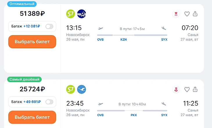 В зимний сезон доступны чартерные рейсы. Кроме того, можно лететь с пересадкой через Москву, Пекин или Шанхай. Время в пути — 10–15 часов. Билеты стоят от 30 тысяч рублей. Узнавая, как добраться до Хайнаня из Новосибирска, учитывайте сезонные предложения — часто они бывают выгоднее стандартных маршрутов.