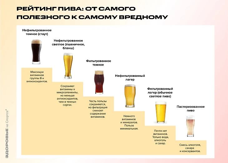 Исходя из этого, составили рейтинг видов пива: от наиболее «щадящих» до самых бесполезных и вредных.