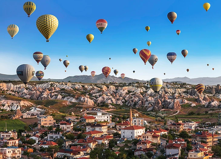 Сюда едут за атмосферой. Чтобы побродить по древним поселениям, переночевать в пещерном отеле, заглянуть в подземные города, в которых прятались люди много веков назад. И, конечно, встретить утро среди десятков воздушных шаров, медленно поднимающихся над холмами.