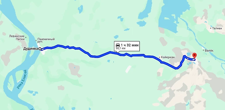 От Дудинки до Норильска добраться можно на автобусе №115, время в пути составит около полутора часов, расстояние 90 километров, стоимость проезда 770 рублей. Поездка на такси обойдется от 1 500 рублей. Из Дудинки до аэропорта Норильска можно доехать на автобусе №110. С 1 июня по 30 сентября он отправляется в 05:00 часов, в остальное время года на час позже.