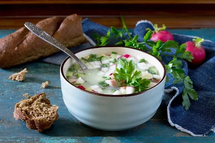 5 рецептов окрошки: на квасе, кефире с яблоком, томатном соке и базилике, веганская, диетическая