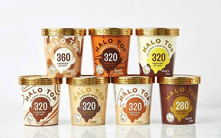 Одним из первых коммерчески успешных брендов стал американский Halo Top, он выпускает низкокалорийное, безглютеновое и безлактозное мороженое. В 2012 году компания впервые представила низкокалорийное мороженое с высоким содержанием белка.