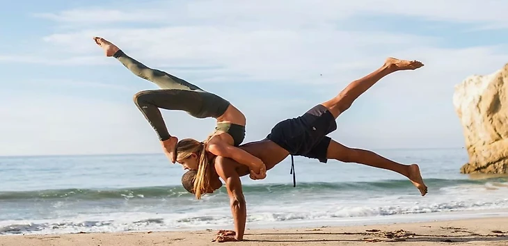 Сочетает аспекты хатха-йоги и акробатических упражнений. Один партнер поддерживает другого, который выполняет балансирующие движения в воздухе. Практика развивает равновесие, укрепляет тело и формирует доверие.