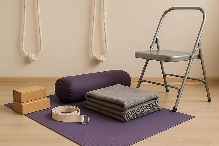Возникает вопрос: можно ли заниматься йогой Айенгара без оборудования? Вполне! Специализированные аксессуары облегчают практику, но для домашнего старта обязательны лишь удобная одежда и коврик или другое нескользкое покрытие на полу. Почти все пропсы можно заменить подручными средствами.