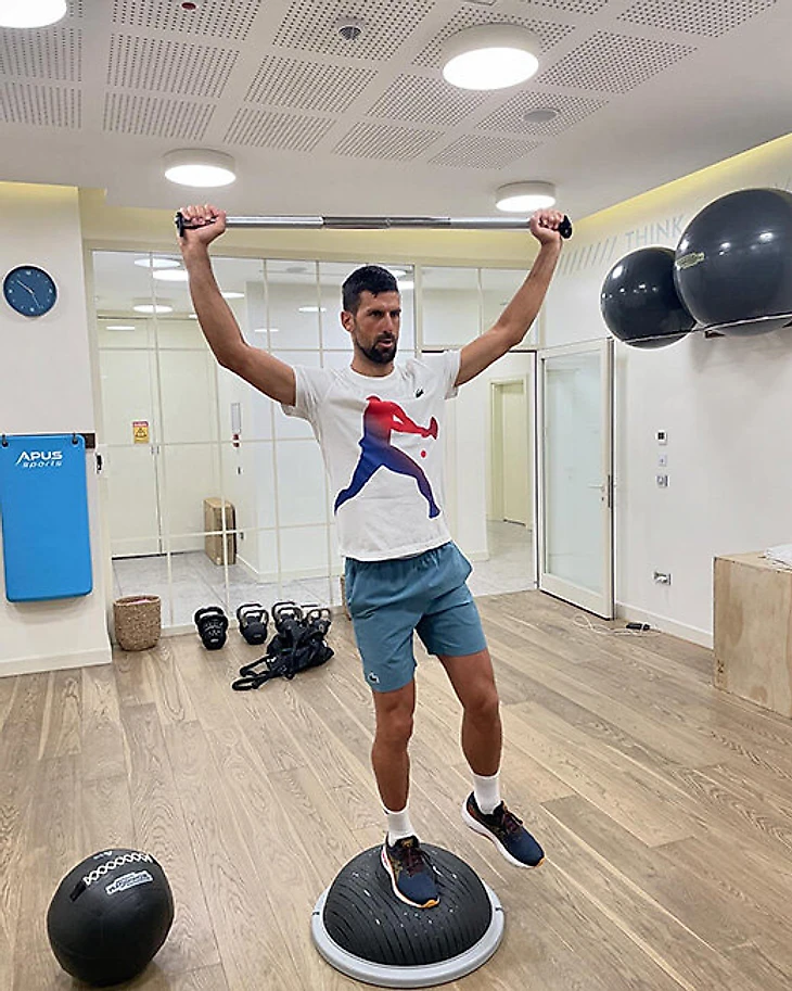 Джокович начинает день с утренней растяжки всего тела. Затем следуют два часа интенсивных тренировок – отработка ударов, тактических схем, работа на выносливость.