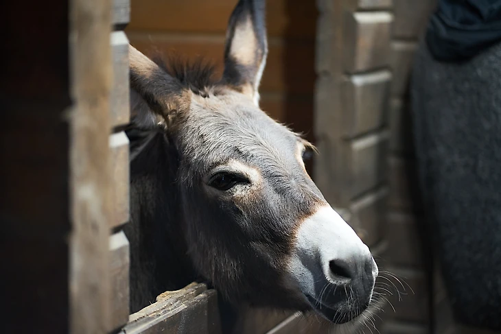 Ослица Маруся. Дагестанская порода. Любит посещать комнаты, где проводят досуг сотрудники и волонтеры, при этом ведет себя абсолютно примерно. Очень человекоориентированная. Благодаря общению с Марусей и рассказу о ней я узнал, что у Арнольда Шварценнегера есть ритуал завтрака с его домашними ослами. Маруся попала в приют благодаря волонтеру приюта Елене, которая отдыхала в Дагестане. Там она наткнулась на бесхозных ослов, в стаде было 2 осленка. Елена нашла человека, который вывез ослят в Рязань, оттуда их на своем коневозе забрал Михаил, управляющий «СвободаЦентра». Одного осленка забрали в семью добрые люди, а Маруся живет в приюте.