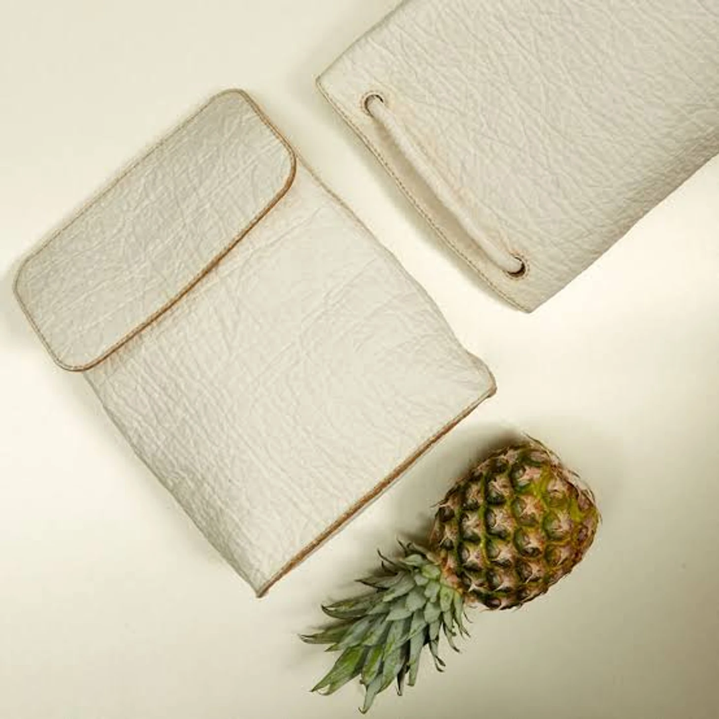 Этичные аналоги кожи: экокожа, экозамжа, кожа из ананасовой кожуры.