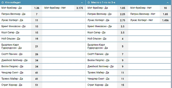 "1Xbet" или "1X Ставка" Сейчас дает возможность поставить на победителя и так же выбрать тройку призеров. Самый низкий коэффициент на Мэт Фрейзера, оно и понятно, последние три года он был победителем Crossfit Games.