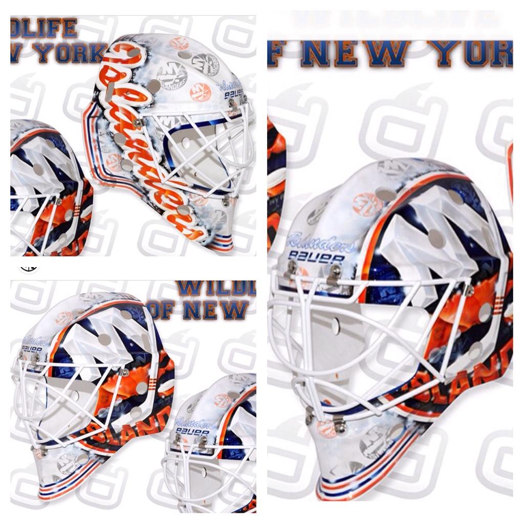 Голкипер «Айлендерс» Чед Джонсон представил новый шлем, в котором будет выступать в сезоне 2014/15.