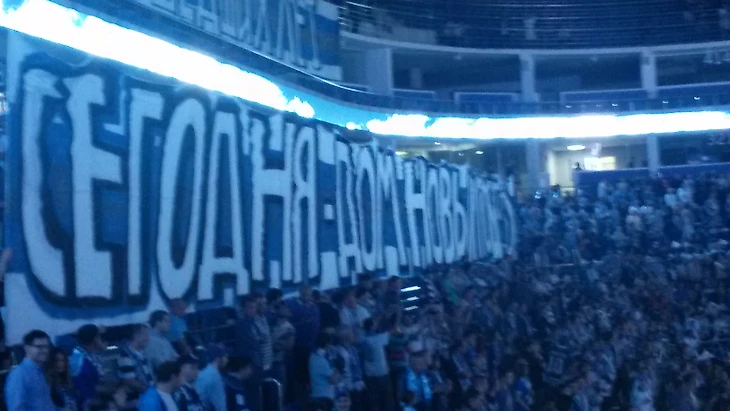 Болельщики «Динамо» подготовили баннер по поводу переезда команды в ВТБ Ледовый дворец, передает корреспондент Sports.ru Кирилл Новокщенов.