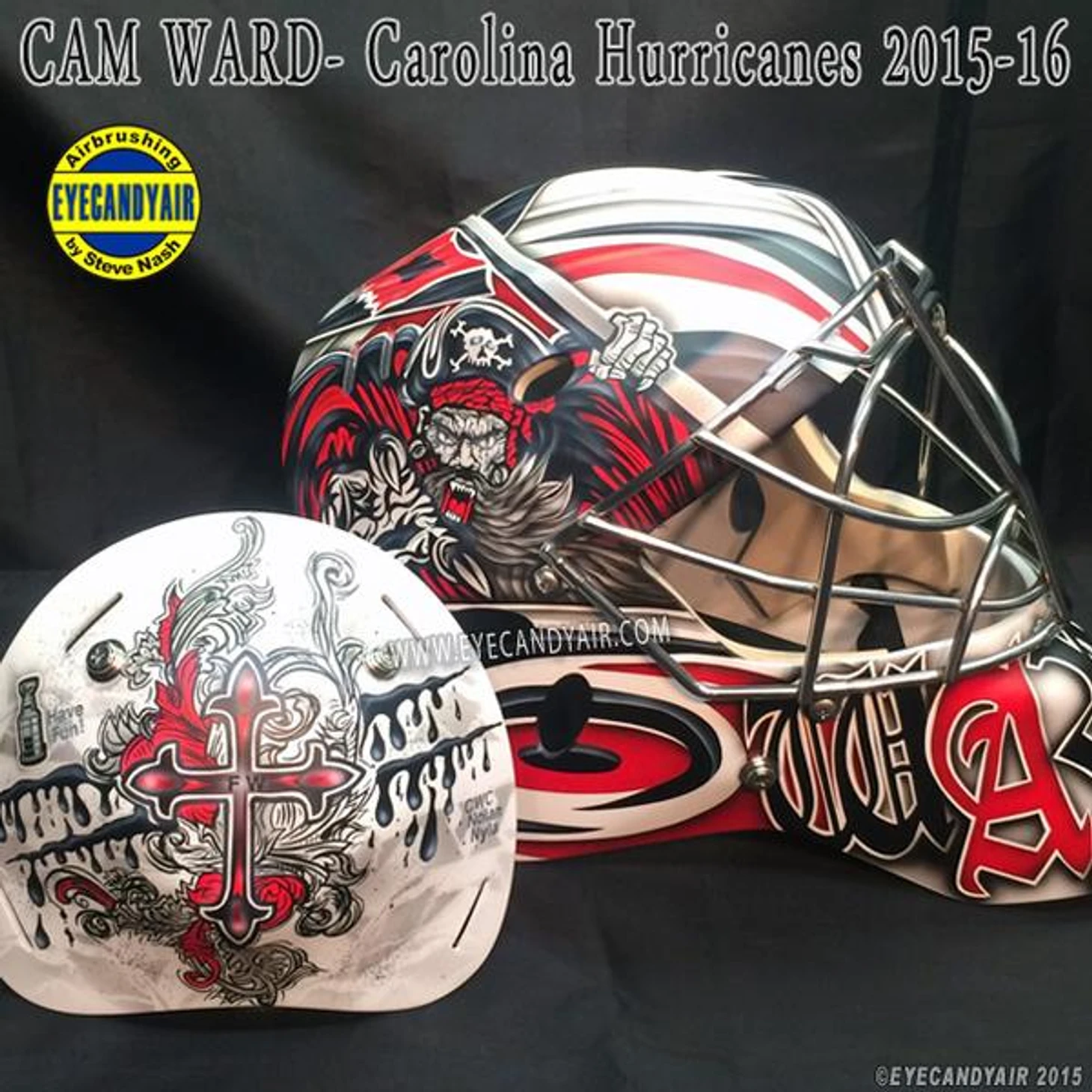 Голкипер «Каролины» Кэм Уорд представил новый шлем, в котором будет выступать в сезоне 2015/16.