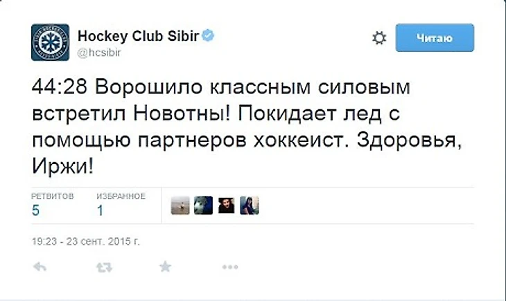 Нападающий «Локомотива» Иржи Новотны получил травму в матче регулярного чемпионата КХЛ против «Сибири».