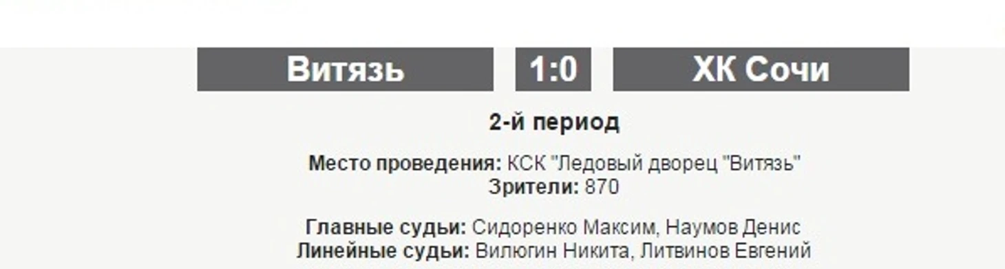 «Витязь» – «Сочи». КХЛ сообщила, что на матче были 870 зрителей, а потом увеличила цифру