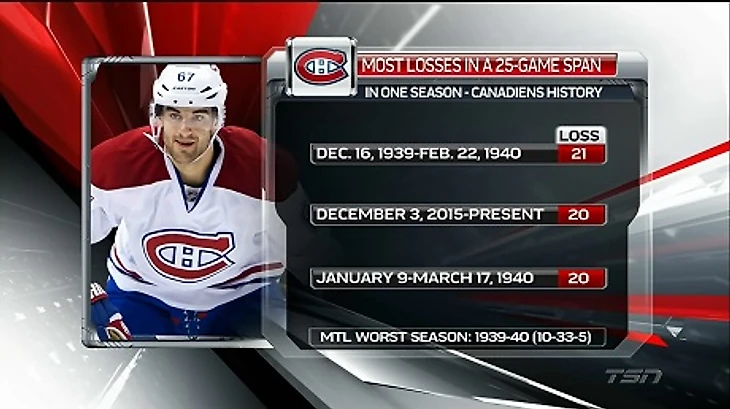 Это поражение стало для «Канадиенс» 20-м в 25 матчах. Таким образом, подобный отрезок стал вторым худшим в истории клуба.