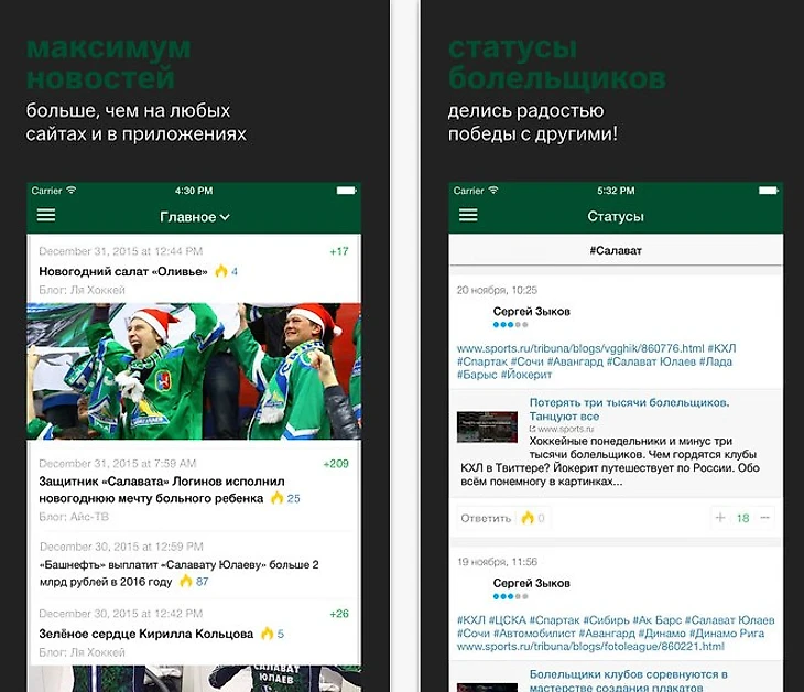 Скачивайте лучшие мобильные приложения ЦСКА, СКА, Металлурга Мг и Салавата Юлаева для ваших iPhone, iPad и Android.