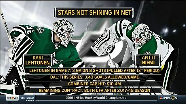 У «Далласа» нет чемпионской вратарской лиги. Джим Нилл должен решить эту проблему. Лехтонен и Ниеми на двоих получают 10,4 млн долларов – это намного больше, чем любой другой вратарский дуэт в НХЛ. И эти парни не выручают «Даллас».