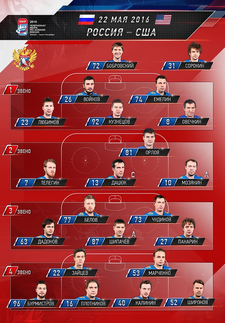 Стал известен состав сборной России на матч за 3-е место на ЧМ-2016 против сборной США.