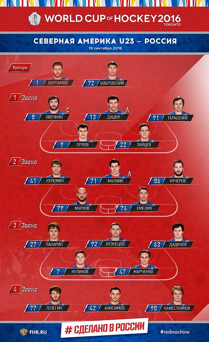 Олег Знарок изменил состав сборной России перед матчем против сборной молодых звезд Северной Америки.