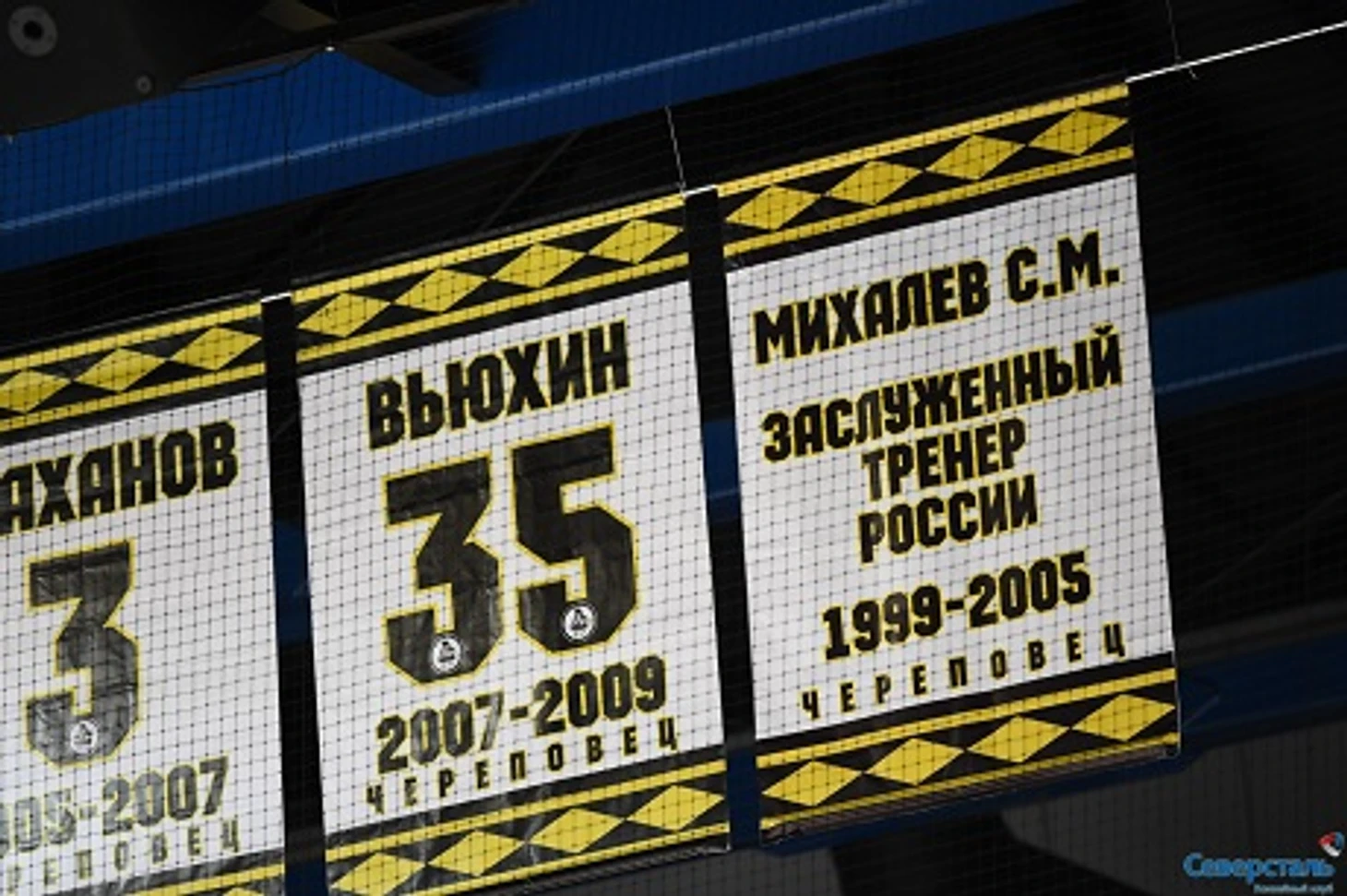На арене «Северстали» подняли именной стяг Сергея Михалева