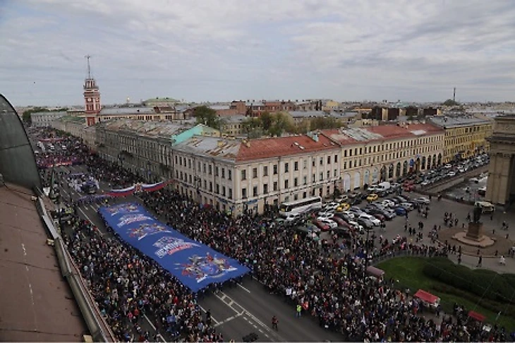 Участники парада проследовали по Невскому проспекту, шествие закончилось на Дворцовой площади.