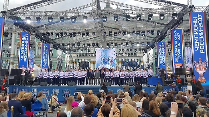 Форвард СКА Виктор Тихонов передал впечатления от чемпионского парада в Санкт-Петербурге.