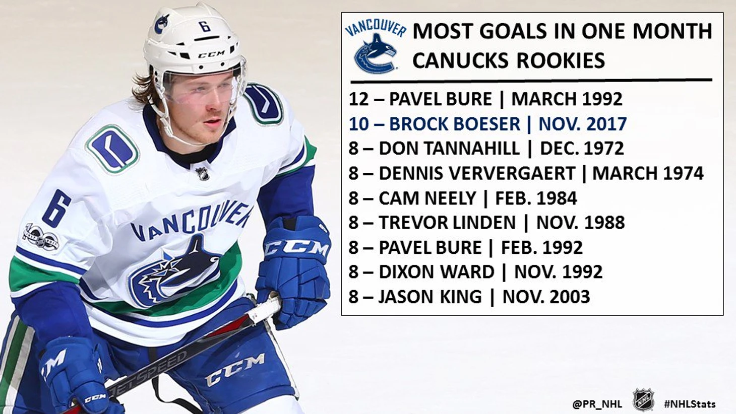 НХЛ. Босер – второй новичок в истории «Ванкувера» с 10 голами за месяц. Первым был Буре