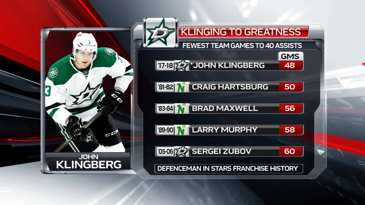 НХЛ. Клингберг сделал 40 передач в 48 матчах – быстрее всех защитников в истории «Далласа»
