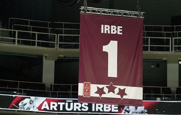 В четверг Латвийская хоккейная федерация чествовала известного вратаря Артура Ирбе перед контрольным матчем сборных Латвии и Швейцарии (1:2 ОТ) на «Арена-Риге».