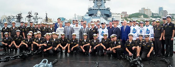 Именные свитера игрокам вручили глава Приморского края Андрей Тарасенко и командующий Тихоокеанским флотом Сергей Авакянц.