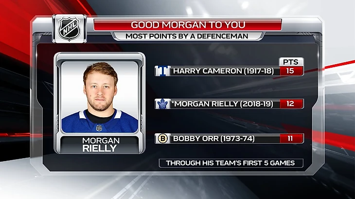 НХЛ. Защитник «Торонто» Райлли набрал 12 очков в 5 стартовых матчах – 2-й результат в истории для игроков обороны