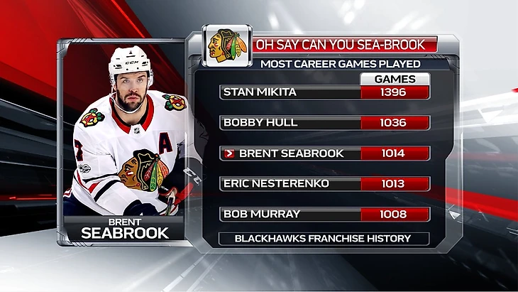 Матч против «Рейнджерс» стал для защитника «Чикаго» Брента Сибрука 1014-м в НХЛ.