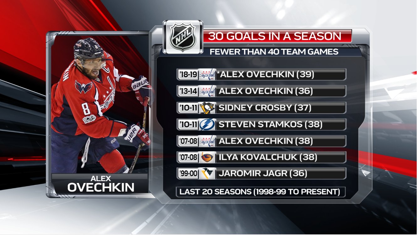 Всего 5 игроков за последние 20 сезонов забили 30 голов меньше чем за 40 игр, Овечкин сделал это 3 раза, никто другой не делал этого больше одного раза https://pbs.twimg.com/media/DwCsYvHWsAErVRo.jpg:large