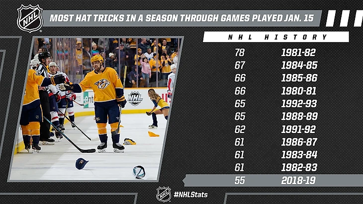 Сегодня в НХЛ случились 2 хет-трика – форвард «Нэшвилла» Виктор Арвидссон забросил 3 шайбы в матче с «Вашингтоном» (7:2), а форвард «Сан-Хосе» Томаш Гертл – в матче с «Питтсбургом» (5:2).