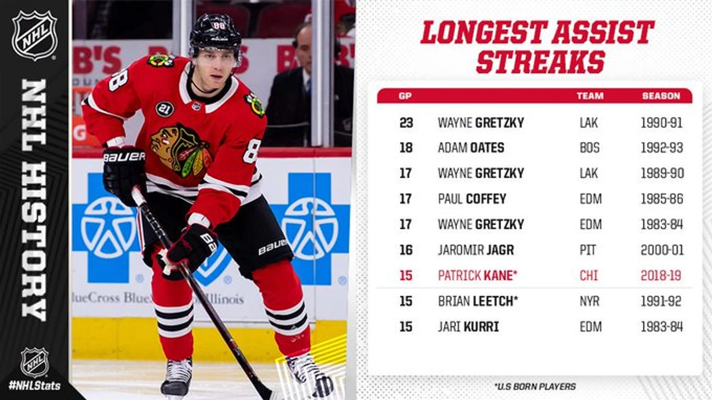 Кроме того, Кэйн продлил серию матчей с голевыми передачами до 15, что позволило ему побить клубный рекорд по продолжительности такой серии, принадлежавший Стэну Миките (14 игр в ноябре-декабре 1967 года). Рекордом лиги владеет Уэйн Гретцки – 23 матча в сезоне-1990/91.