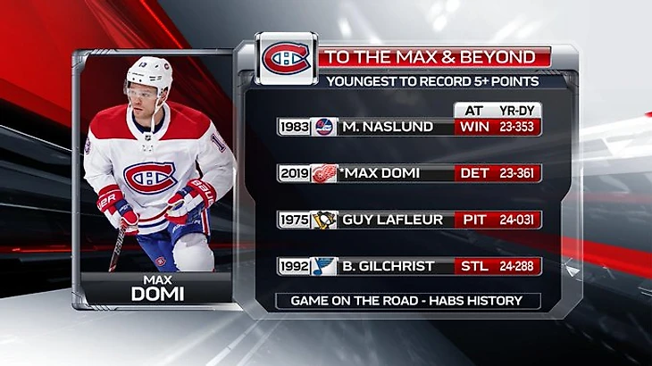 НХЛ. Доми – 2-й самый молодой игрок в истории «Монреаля», набравший 5 очков на выезде