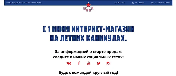 ЦСКА: «С 1 июня интернет-магазин на летних каникулах»