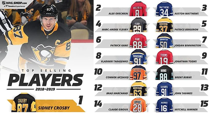 Свитеры с фамилией Кросби – самые продаваемые по итогам сезона-2018/19, Овечкин и Тарасенко – в топ-10