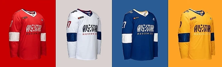 Четыре цветовых вариации формы подготовлены для четырех дивизионов КХЛ, в каждой из них преобладает один из цветов фирменного стиля мероприятия – красный, белый, синий или желтый», – говорится в сообщении на официальном сайте лиги.