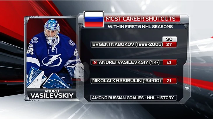 Василевский делит с Хабибулиным 2-е место среди российских вратарей по шатаутам за первые 6 сезонов в НХЛ