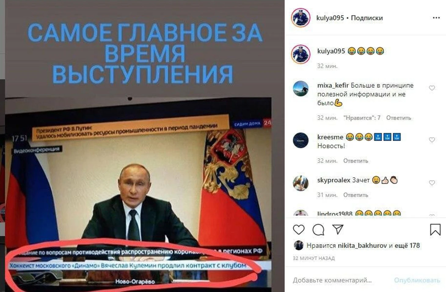 • Вячеслав Кулемин пошутил про новость о контракте во время обращения Путина: «Самое главное за время выступления»