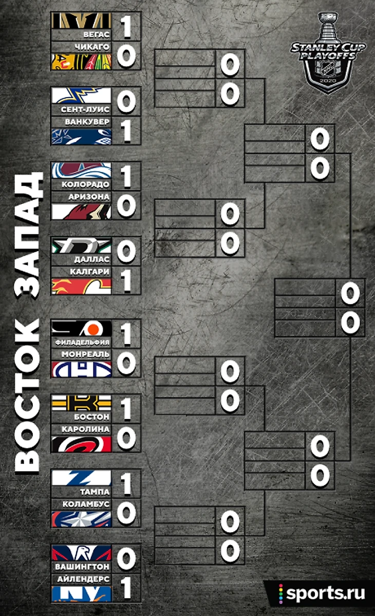 Регулярный чемпионат НХЛ был досрочно завершен из-за коронавируса. 8 мест в первом раунде были разыграны в квалификации.
