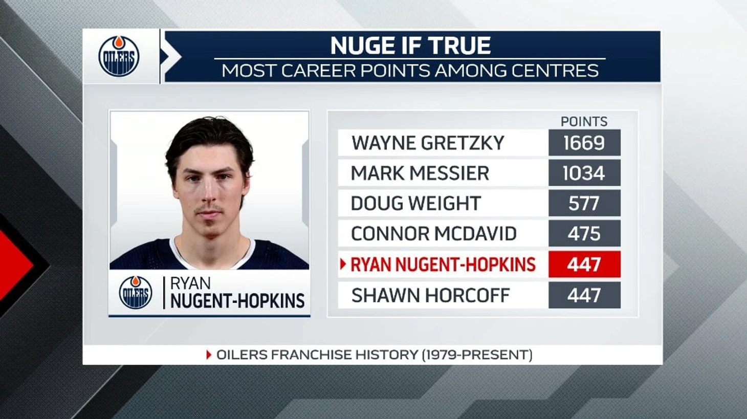 Нюджент-Хопкинс вышел на 5-е место в истории «Эдмонтона» по очкам среди центральных нападающих