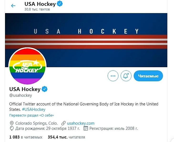 Федерация хоккея США сменила юзерпик аккаунта в твиттере в честь ЛГБТ-месяца гордости