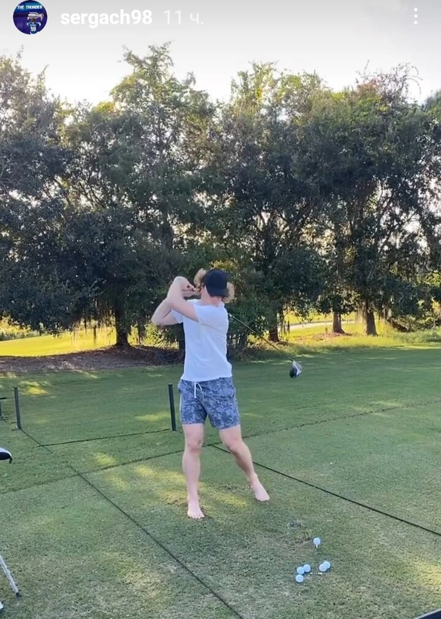 Российские хоккеисты «Тампы» – вратарь Андрей Василевский, защитник Михаил Сергачев и нападающий Никита Кучеров – сыграли в гольф.