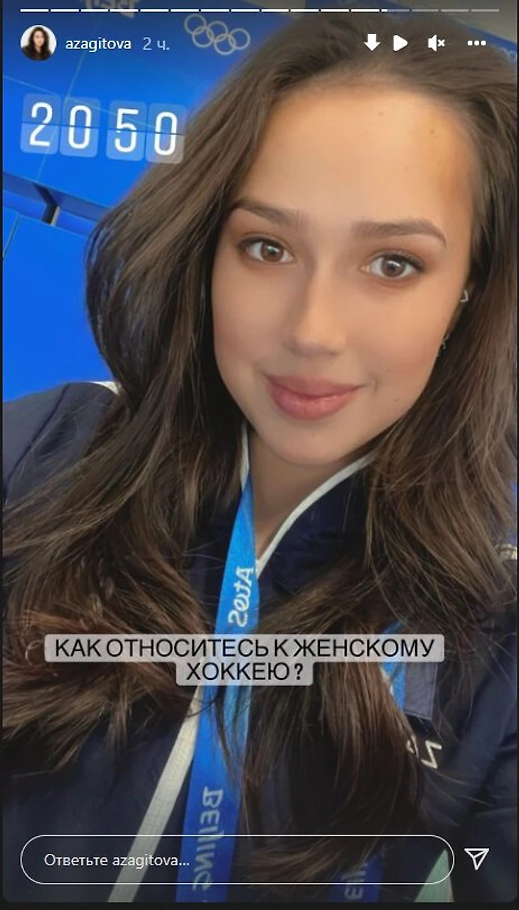 Фигуристка выложила видео с матча в сторис инстаграма.