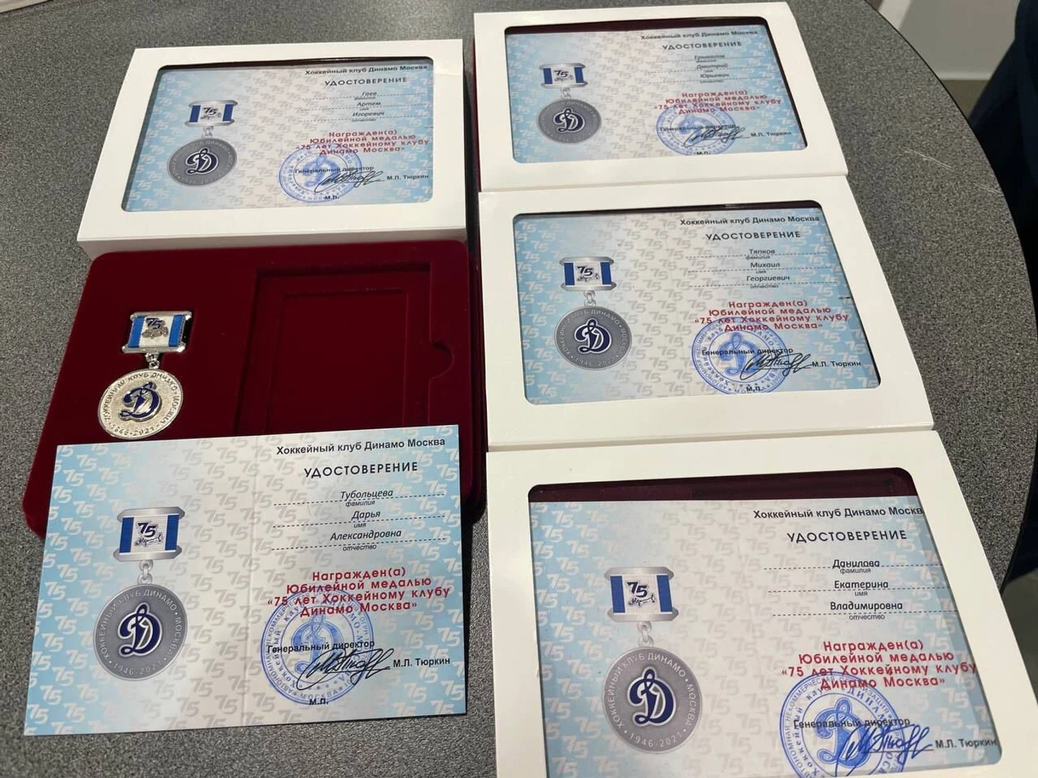 «Динамо» дарит медали в честь 75-летия хоккейного клуба всем журналистам, которые освещают выступление команды», – написала Тубольцева.