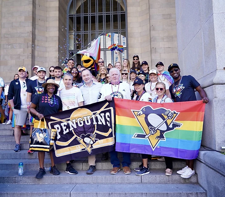 От клуба на парад, состоявшийся в рамках месяца гордости, пришел президент «Пингвинс» по хоккейным операциям Брайан Бурк.
