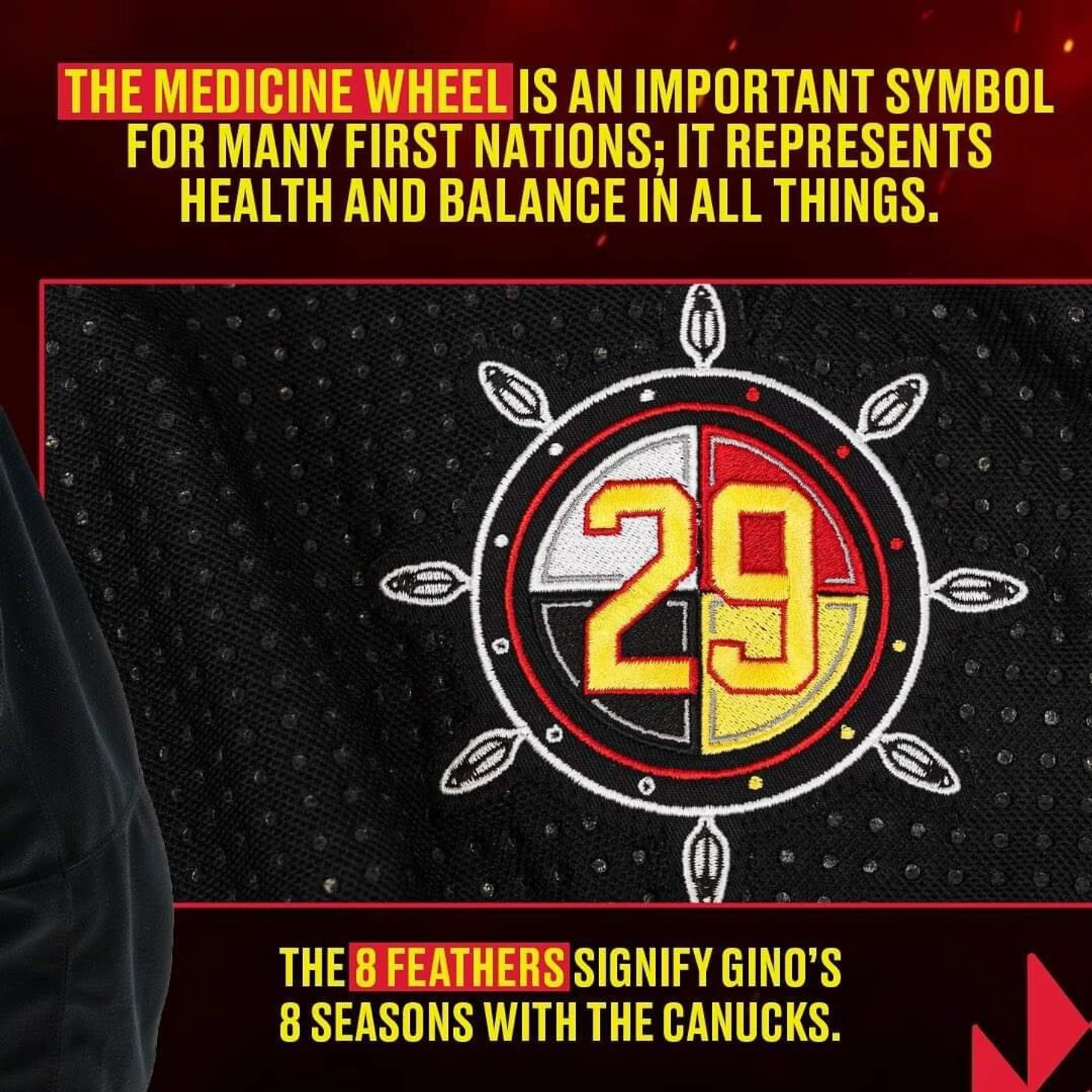 • «Ванкувер» представил форму для раскатки с логотипом, посвященным коренным народам Канады. Дизайнер – кузен Джино Оджика, умершего в январе