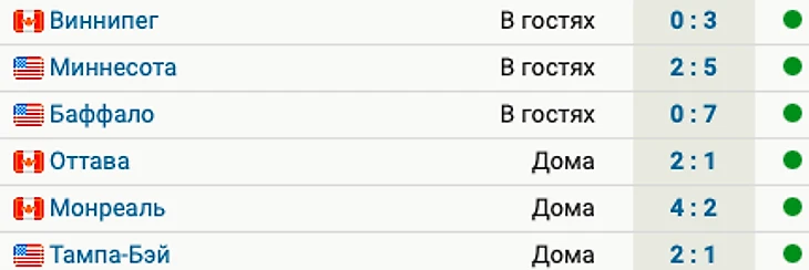 До этого были победы над «Монреалем», «Оттавой», «Баффало», «Миннесотой» и «Виннипегом».