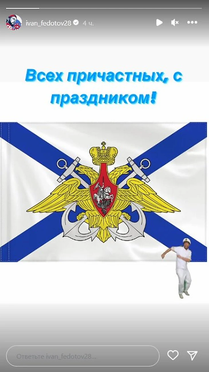 Он разместил в инстаграме флаг Военно-Морского Флота России, который также называется Андреевским флагом.